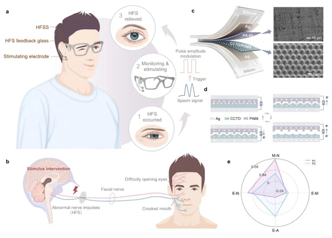 2026-01-13面肌痉挛(Hemifacial spasm, HFS)指单侧面部肌肉不自主、间歇性抽动,严重影响患者生活质量。目前临床诊断与评估依赖患者痉挛表征,主观性较强。现有治疗以肉毒毒素注射及显微血管减压术为主,前者疗效持续时间有限,后者则伴有一定手术风险。因此亟需一种无创、可持续、量化监测面肌痉挛,并在发作期间施加及时有效干预的闭环调控方法。近日,清华大学生物医学工程学院李翀团队联合清华大学机械工程系、北京清华长庚医院及清...