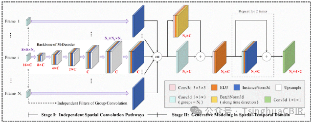 本研究试图从自监督学习的路径出发,解决上述难题。本研究首先从计算机视觉中的深度图像先验出发,通过利用卷积神经网络本身的归纳偏置来提供图像上的视觉先验。其次,由于4D-flow MRI数据量庞大、信息丰富,对于生成器的表达能力提出了挑战;为此我们提出一种全新的基于部分独立结构的卷积解码生成器,通过在生成过程中对时域和空间域的特征进行部分的分离,能够有效地降低计算代价,并且提高模型效率以及生成性能。最后,我们将相位对比血流成像中独特的复数差稀疏性,创新性地融合进了自监督模型当中,构建了一个生成-稀疏联合约束的重建模型,并导出了一种基于ADMM的迭代算法对该模型进行求解。该算法主要分为两个步骤,其一是对生成器进行预训练;其二是利用预训练的生成器作为算法初始化解,通过生成-稀疏联合迭代算法进一步增强图像质量。