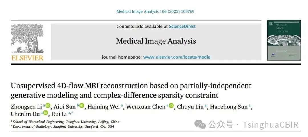 近期,清华大学生物医学工程学院生物医学影像研究中心在医学影像领域顶级期刊《Medical Image Analysis》上发表题目为“Unsupervised 4D-flow MRI reconstruction based on partially-independent generative modeling and complex-difference sparsity constraint”的论文: