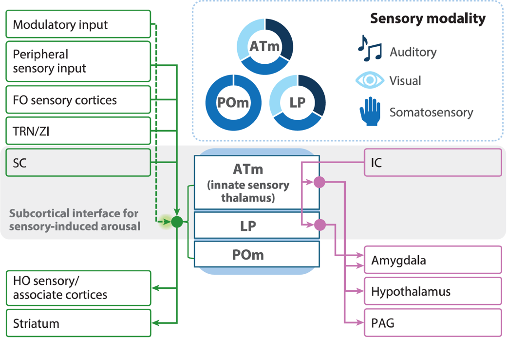 图1 高阶感觉丘脑介导多模态感觉诱发唤醒的神经基础
