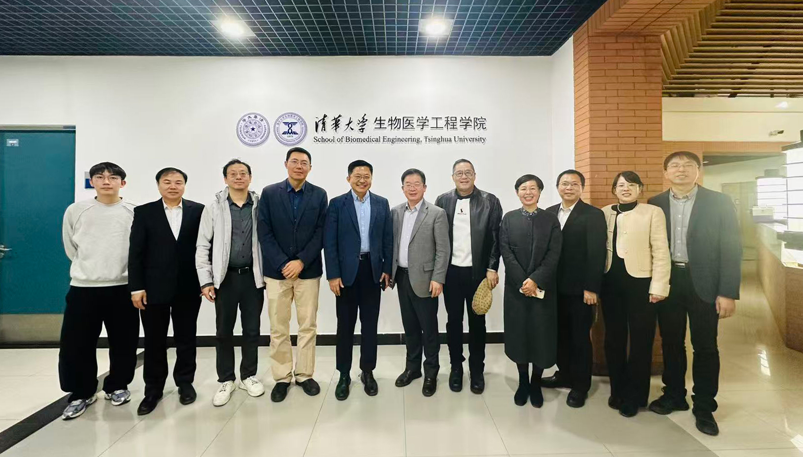 2026年3月10日,温州医科大学副校长吴文灿、科技处处长王晓杰、康复医学院院长王雪强等一行访问清华大学生物医学工程学院,学院院长胡晔,副院长杜亚楠、赵锡海及学院教师代表参会。