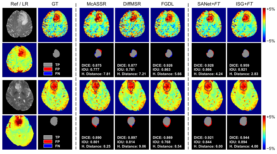 近期,针对临床代谢磁共振采集慢和图像模糊的长期痛点,清华大学生物医学工程学院宋小磊课题组通过自适应微调AI技术和病人自身结构像参考,实现了脑肿瘤病人的代谢图像超分辨增强。相关文章发表在医学影像领域顶级期刊《IEEE Transactions on Medical Imaging》,题目为“脑肿瘤多对比度 MRI 超分辨:任意尺度隐式采样与无监督微调(Multi-contrast MRI super-resolution in brain tumors: arbitrary-scale implicit sampling a...